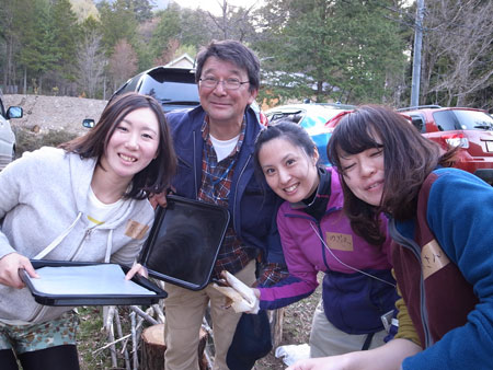 スタッフドチキンやピザはもちろん、岩魚の塩焼きの差し入れもあり、